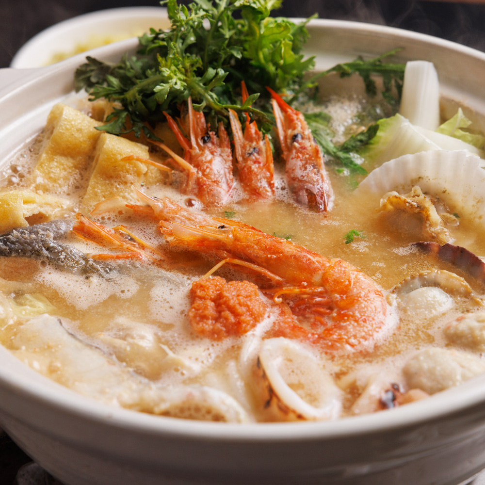 ごまの香ばしさと海老の旨味・出汁が自慢の、濃厚な味わいのごま寄せ鍋です。