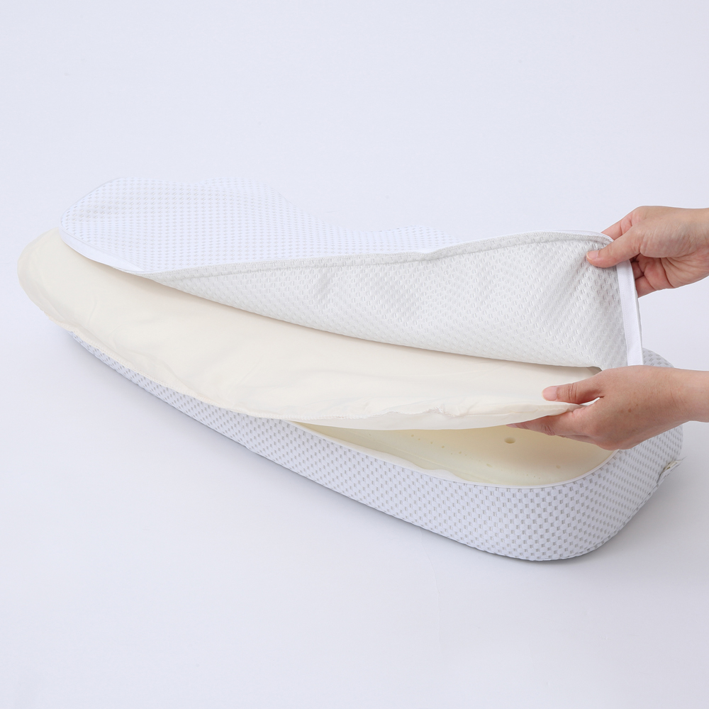 また、本体は洗濯可能な側生地を使用していますが、より衛生的にご使用いただくために、専用枕カバーの併用がおすすめです。