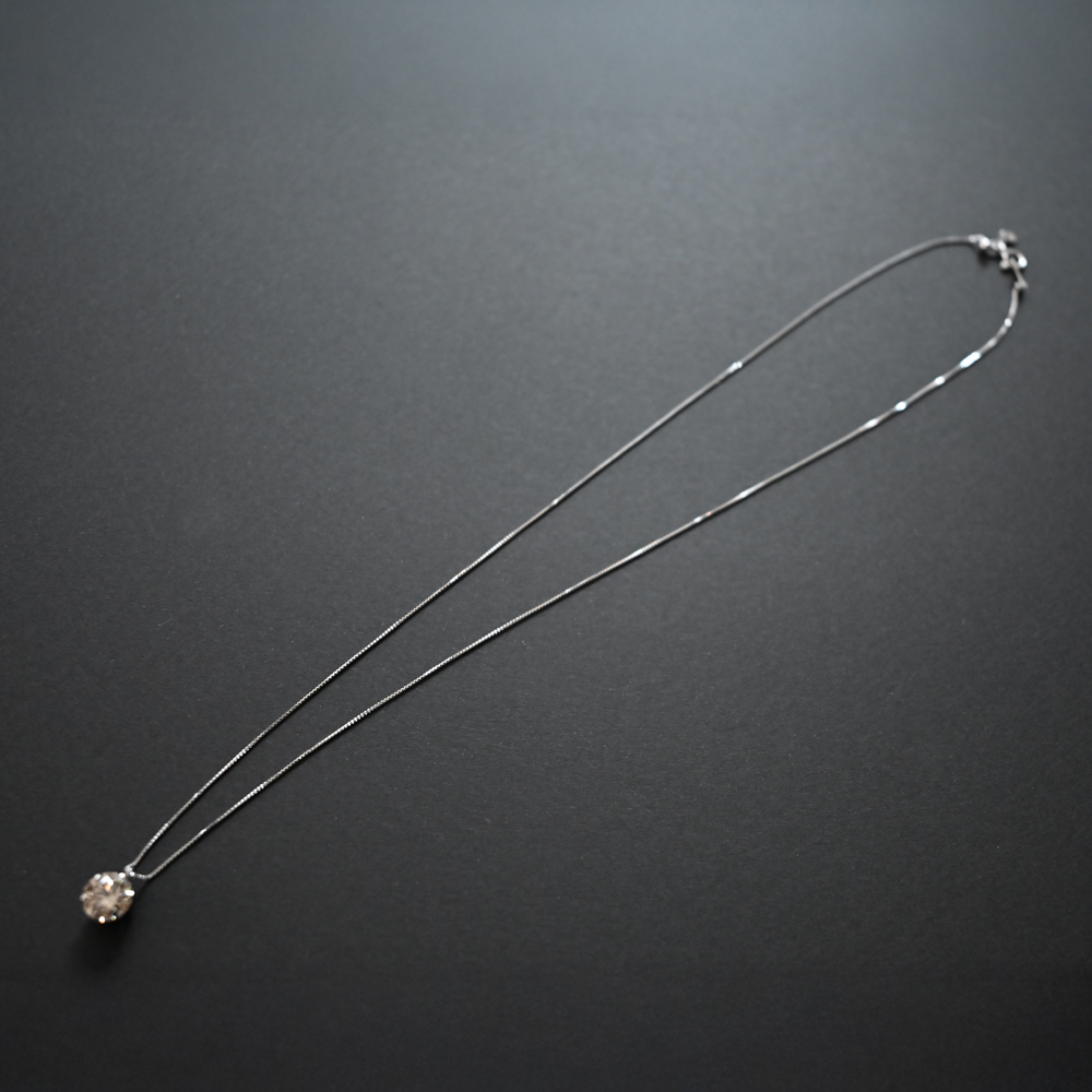 チェーンだけでなく台座や留め具まで総プラチナ仕上げにすることで、透明感を際立たせ、全体を上品かつエレガントに演出。さらに長さ調節が可能なアジャスター付きで、装いに合わせて幅広く活躍します。
