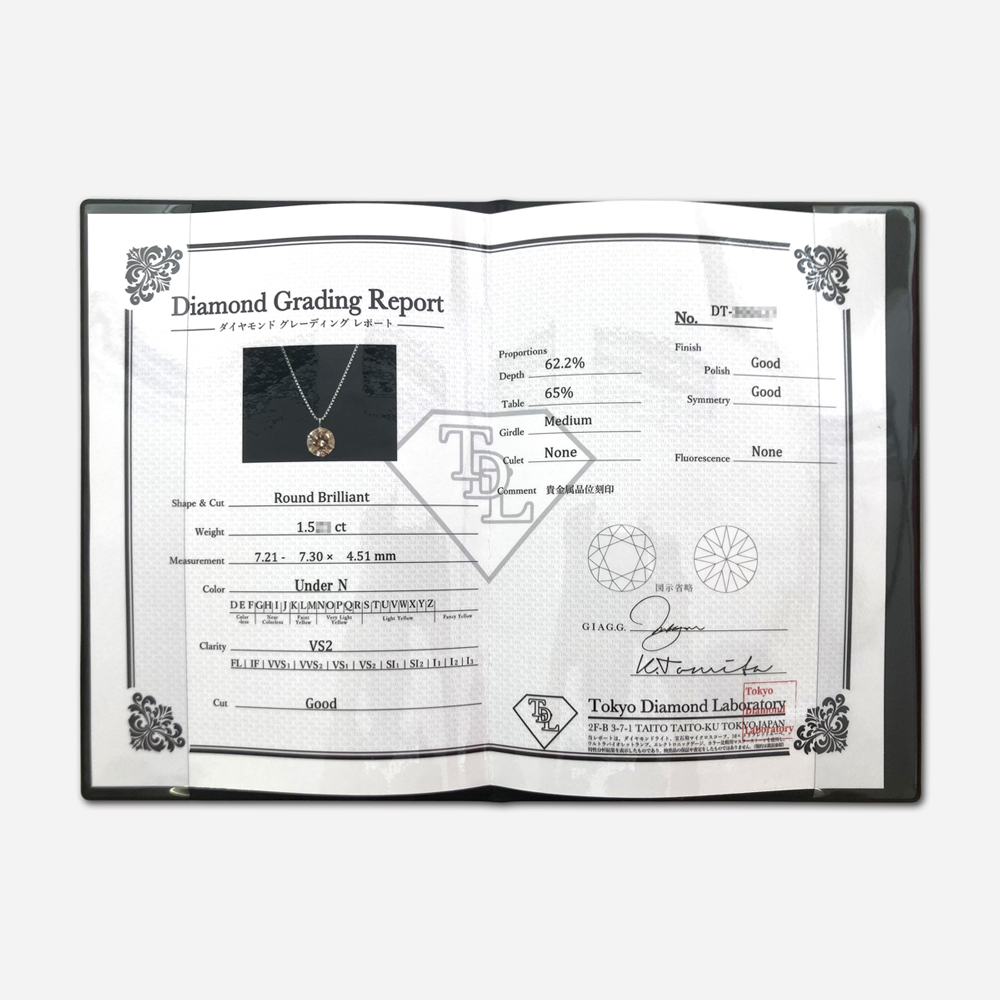 | グレーディング | カラット:1.5ct カラー:underN クラリティ:VS2 カット:Good |