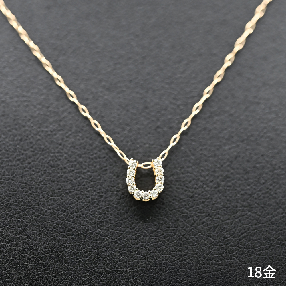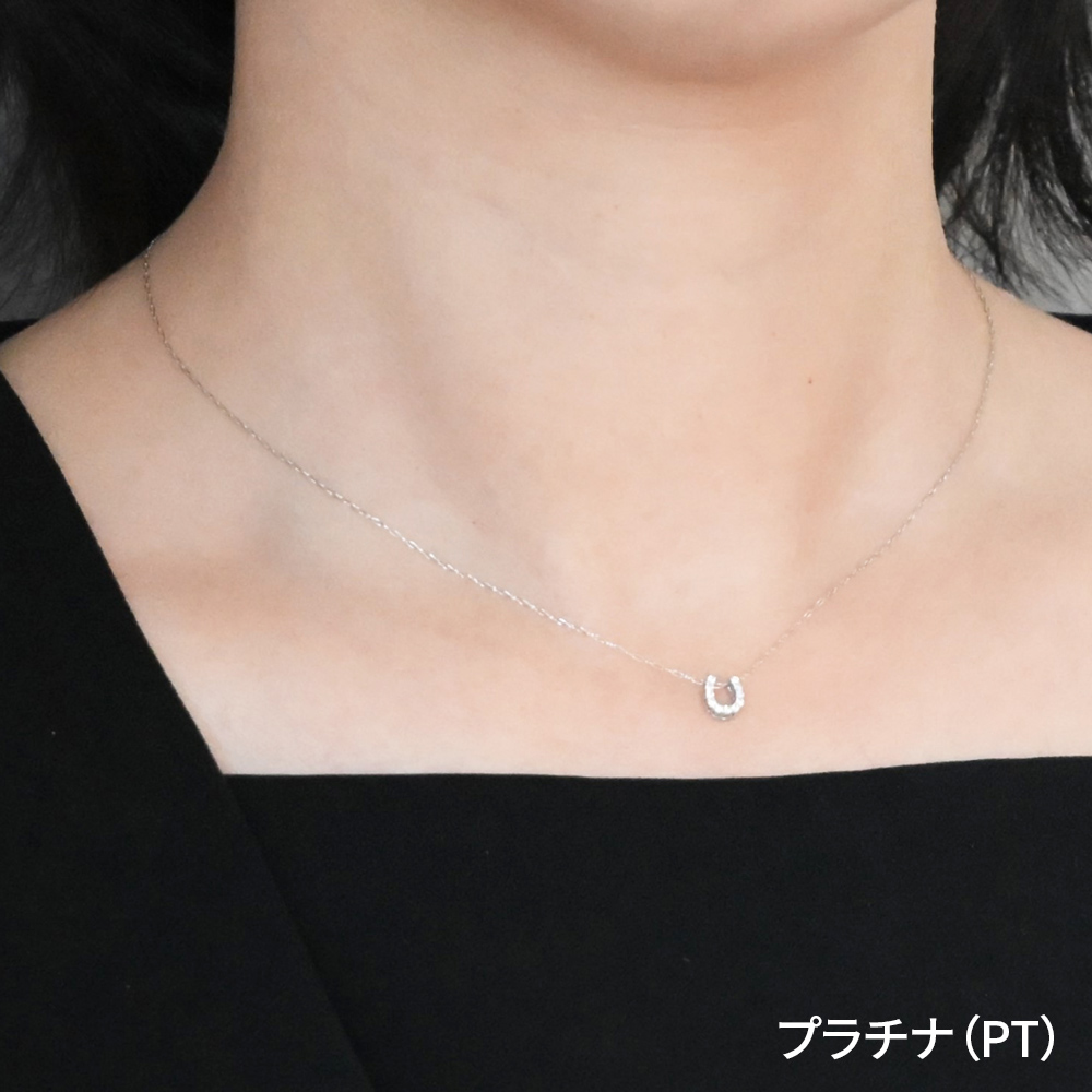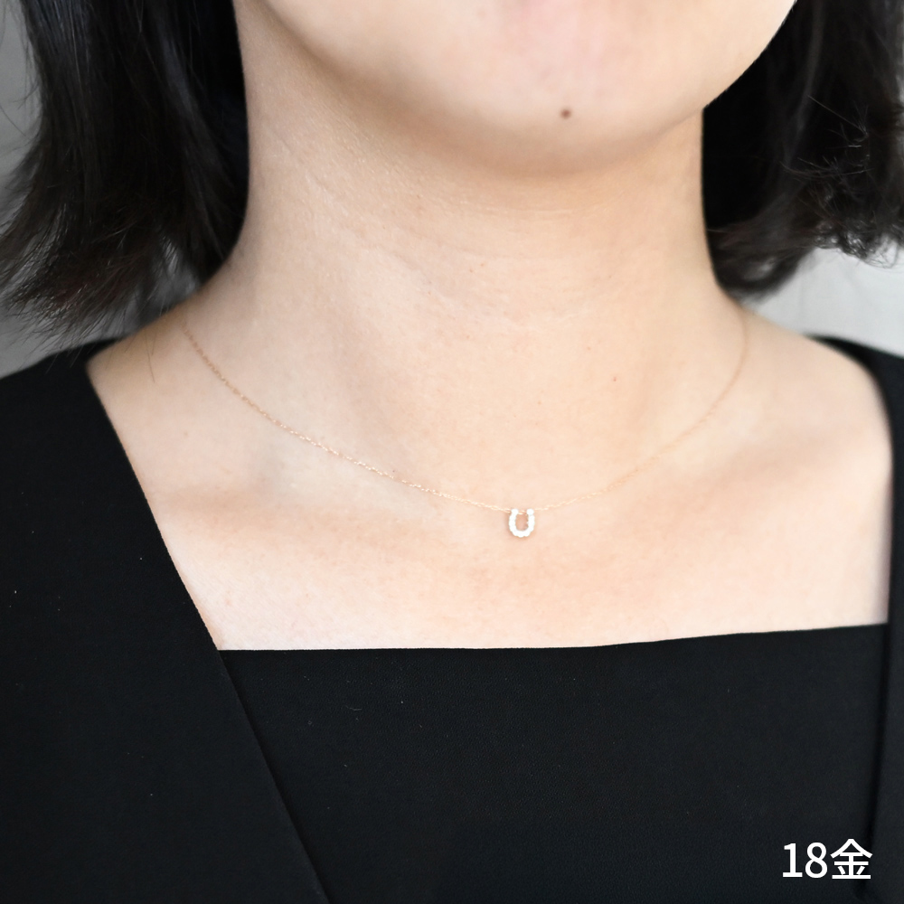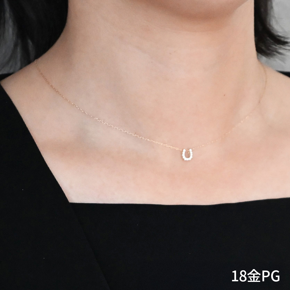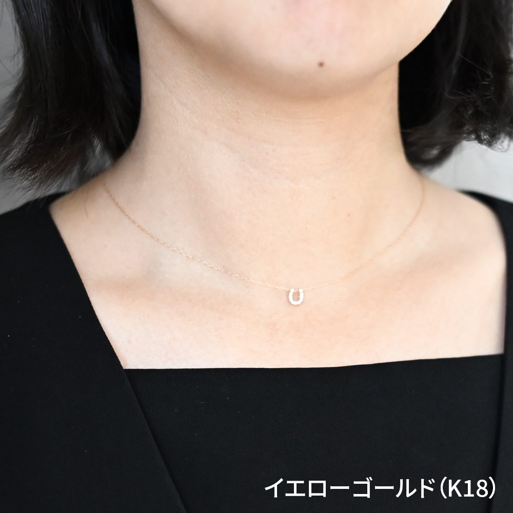 幸運を呼び込むとされる馬蹄を、繊細なダイヤモンドでかたどった上品なネックレス。ご自身へのご褒美にも。