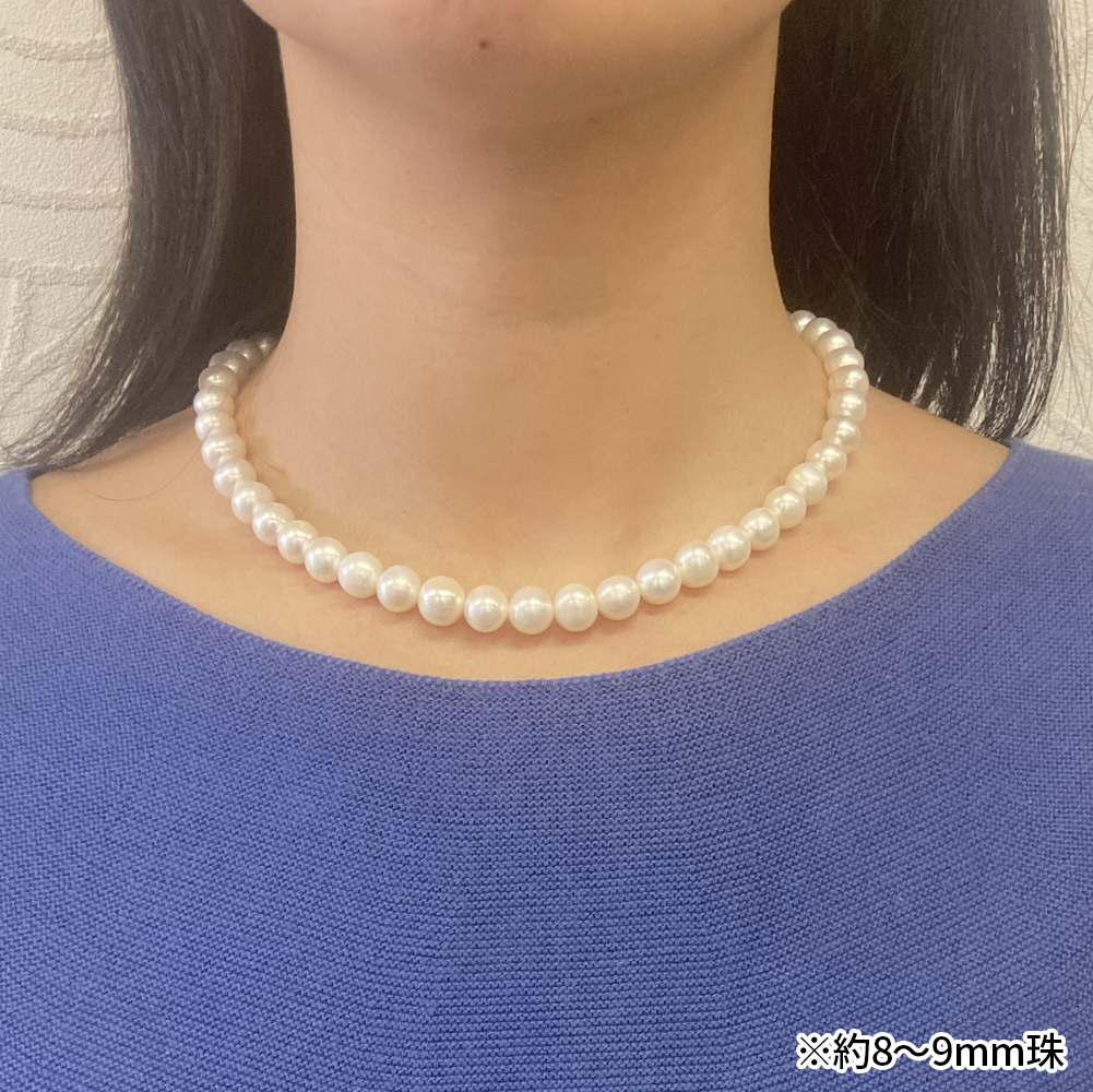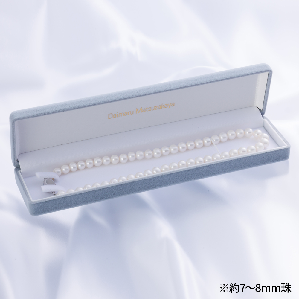 上品な印象の「7〜8mm珠」と、存在感のある「8〜9mm珠」。装いやシーンに合わせてお選びいただけます。あなただけの一本をお楽しみください。