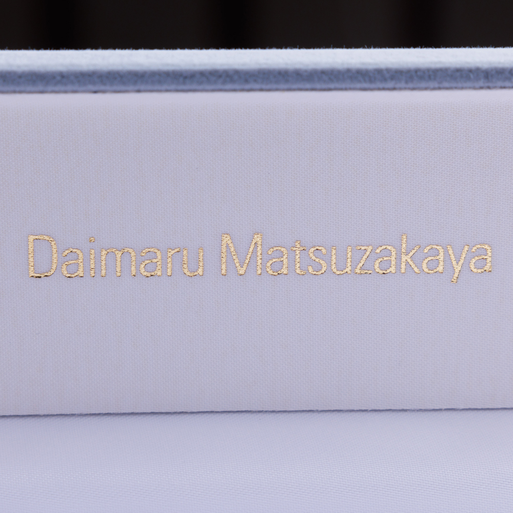 大丸松坂屋百貨店ネーム入りの専用ケースに収納。外箱付きで、高級感と安心感のある仕様です。ご自身用にも、贈り物にもおすすめです。