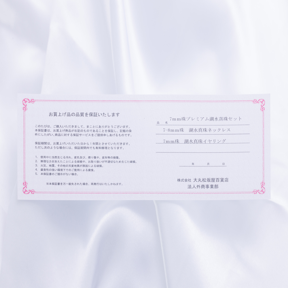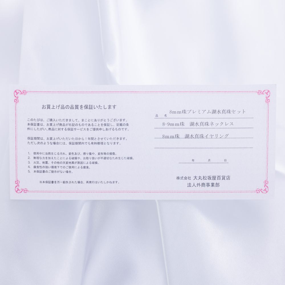 大丸松坂屋百貨店法人外商事業部発行保証書