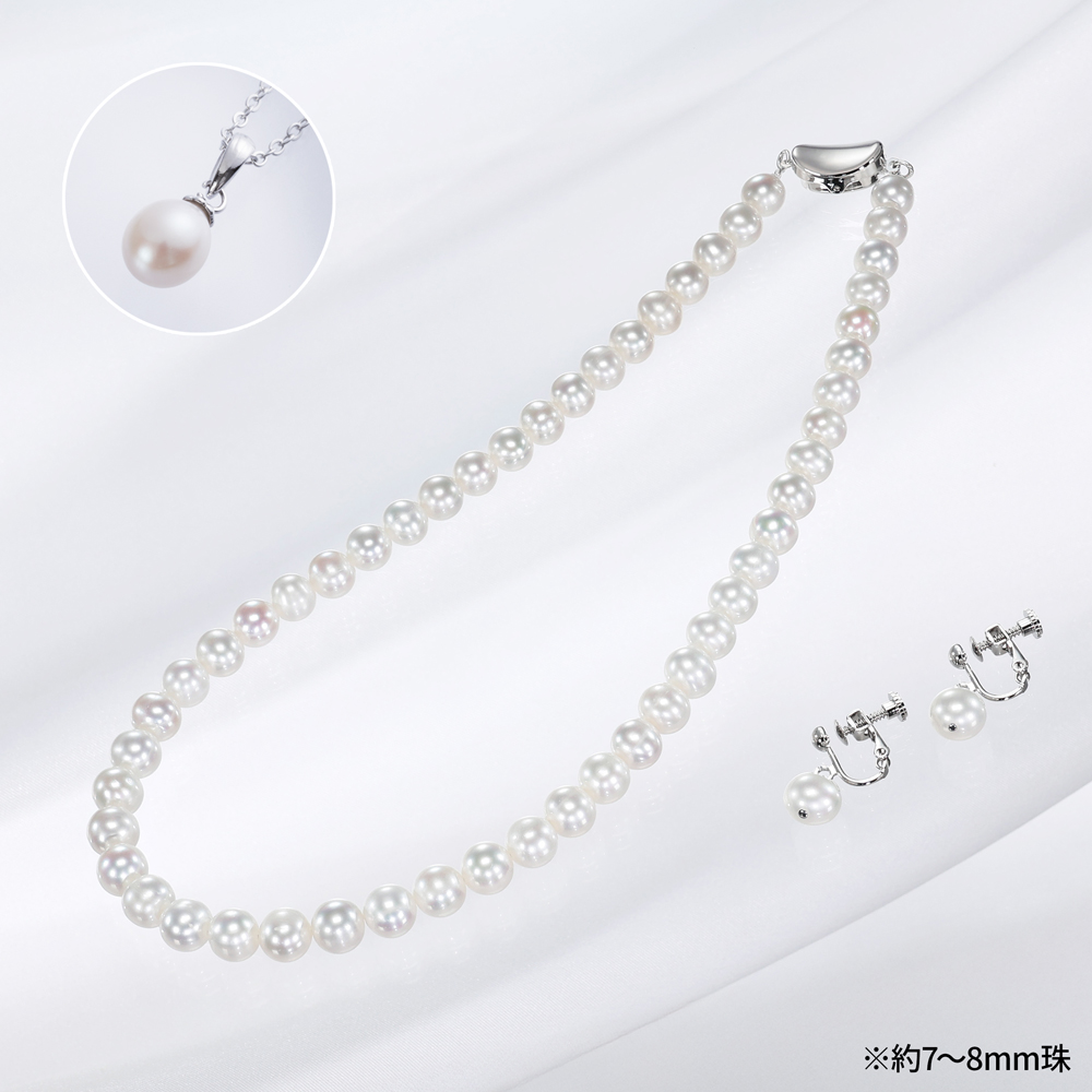 大丸松坂屋百貨店法人外商事業部おすすめ!プレミアム湖水真珠ネックレスセット 7〜8mm珠または8〜9mm珠 ペンダントネックレスプレゼント!
